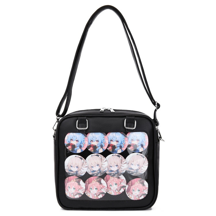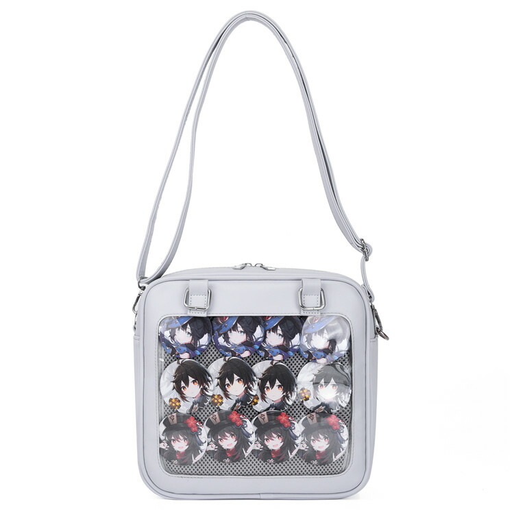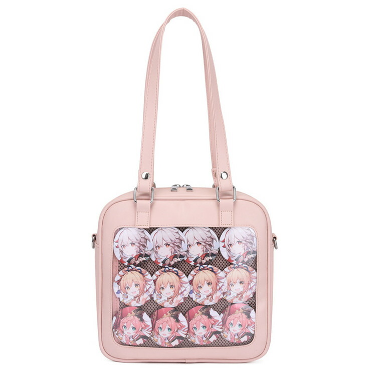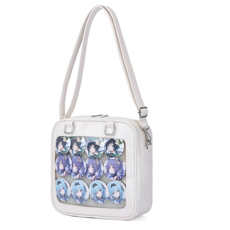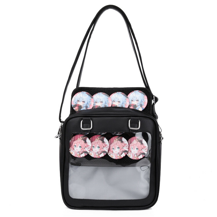 ◆ フロントに透明ポケットで見せたいアイテムを自由にアレンジできます。好きな芸能人やアニメキャラの写真、缶バッジ、ストラップ、ぬいぐるみ、萌グッズなど入れて一目瞭然です。