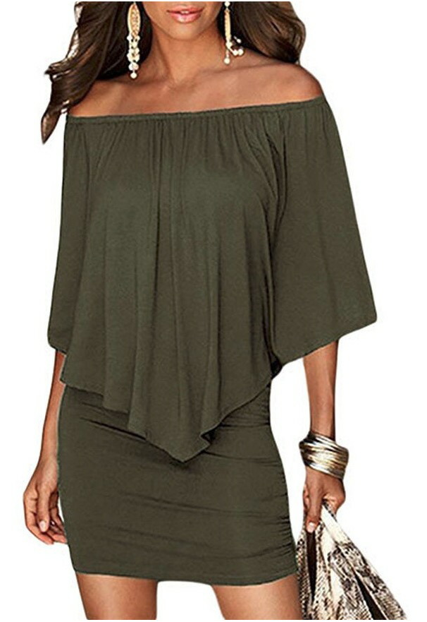 オフショルダー ワンピース 半袖 レデ ワンピース 続々登場 ブラック 黒 パープル 紫 カーキ 緑 M L XL XXL