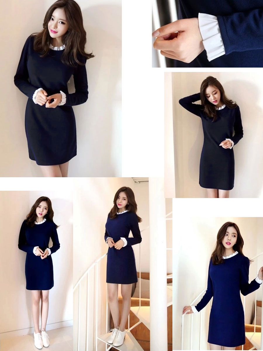 キャバ 魅惑 ドレス レディース 黒 パブ 長袖 レース タイト スカート エレガント プリーツ 韓国 セクシー