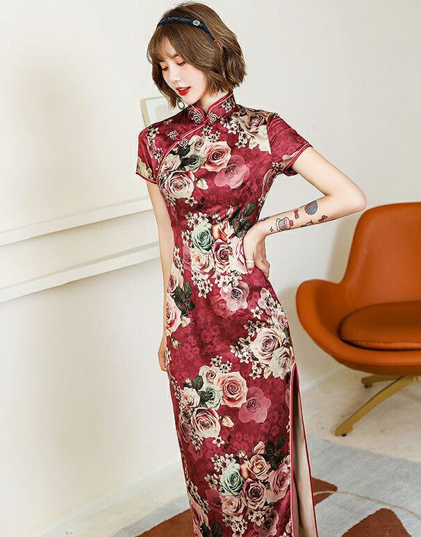チャイナドレス ロング スリット入り ドレス 新登場! M L XL