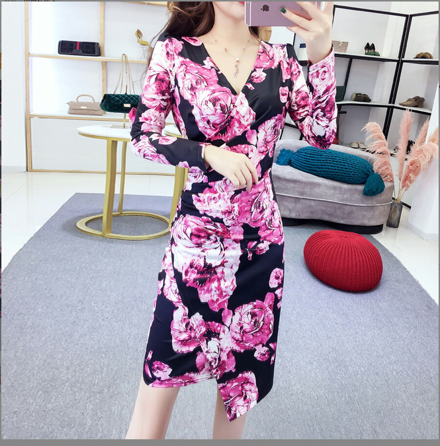 キャバ 魅惑 ドレス レディース 黒 パブ 長袖 レース タイト スカート エレガント プリーツ 韓国 セクシー