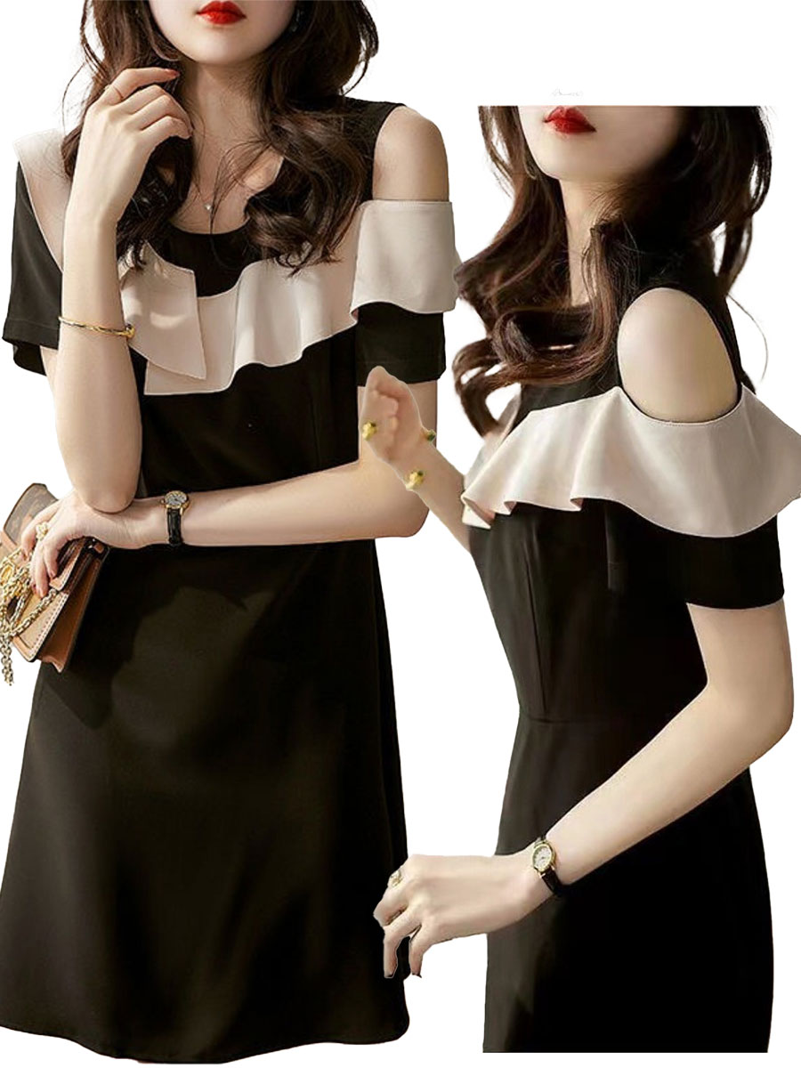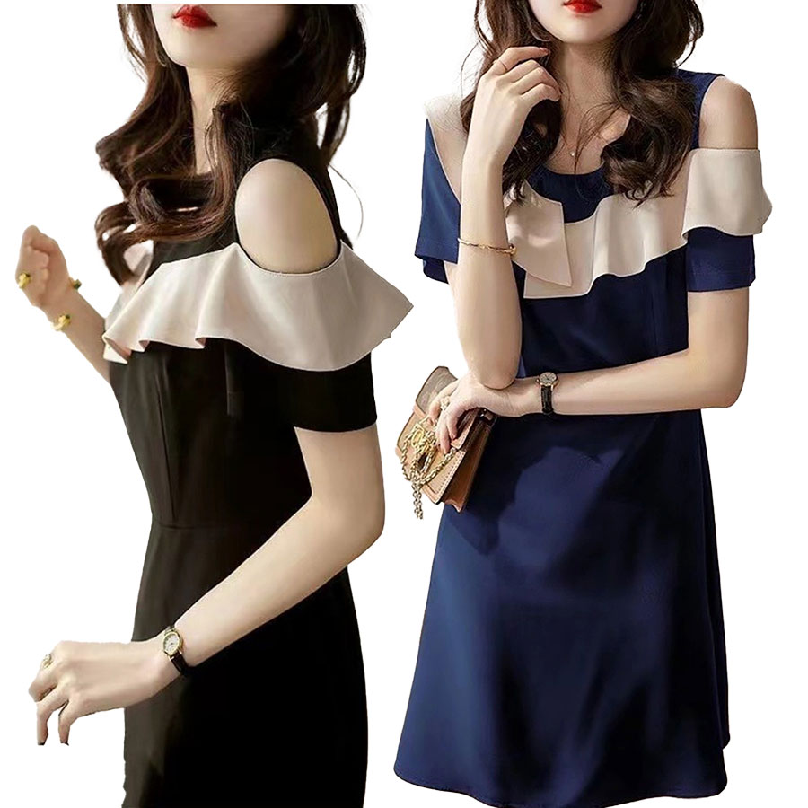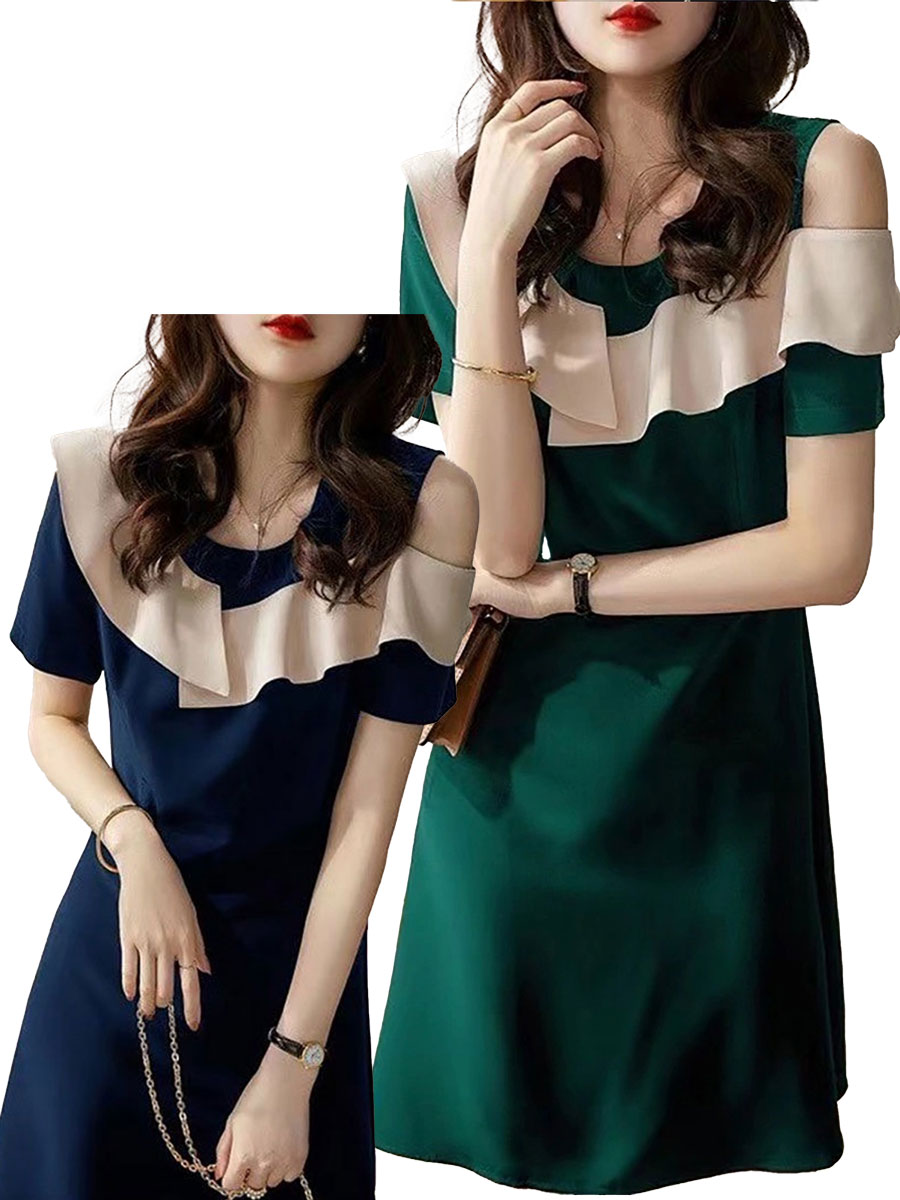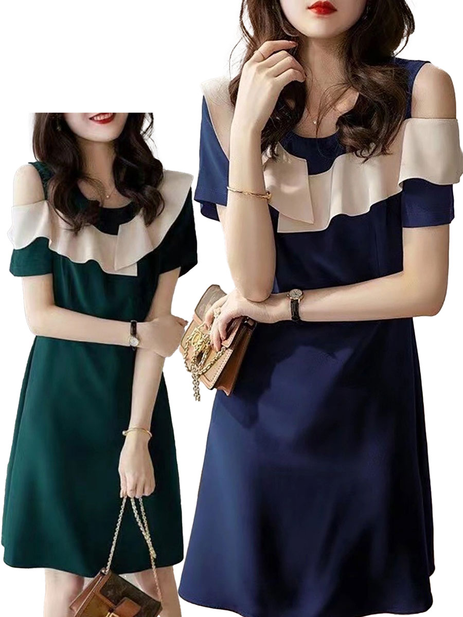 オフショルダー ワンピース 肩出し き レディースファッション 続々登場 ブラックベージュ ネイビーベージュ グリーンベージュ M L XL XXL