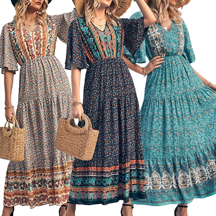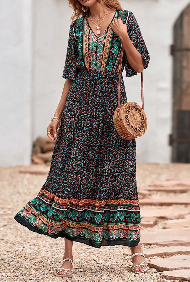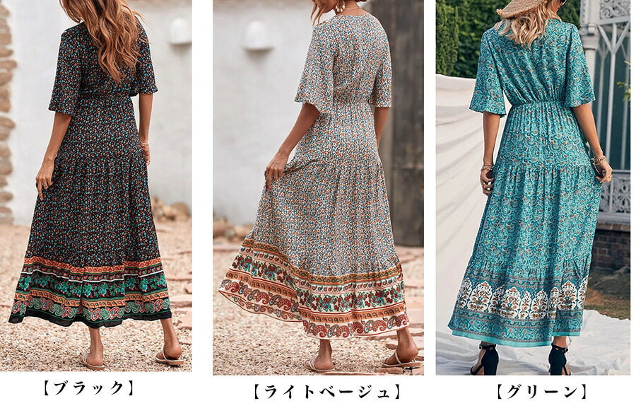 レトロ ペイズリー柄 レディース ワン ワンピース 続々登場 ブラック ライトベージュ グリーン M L XL