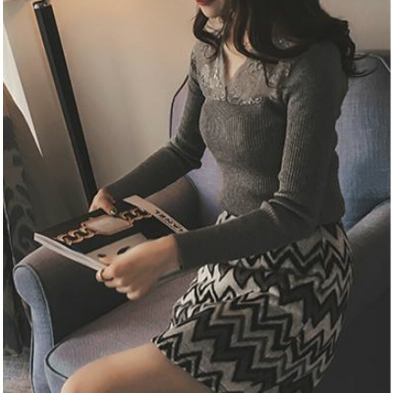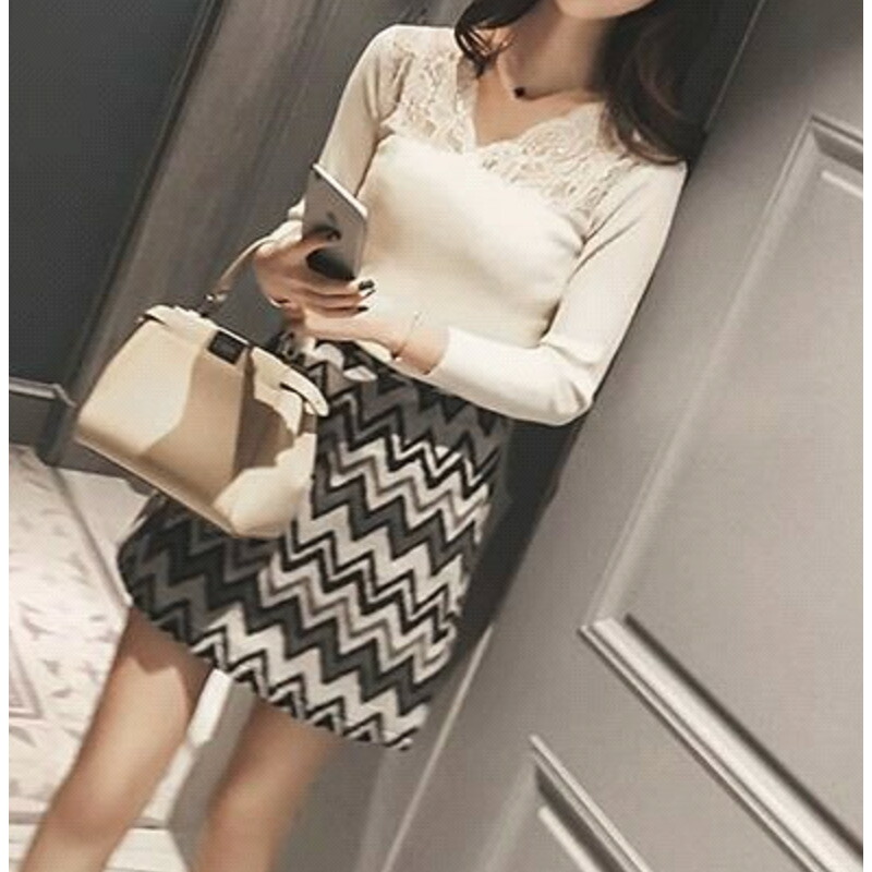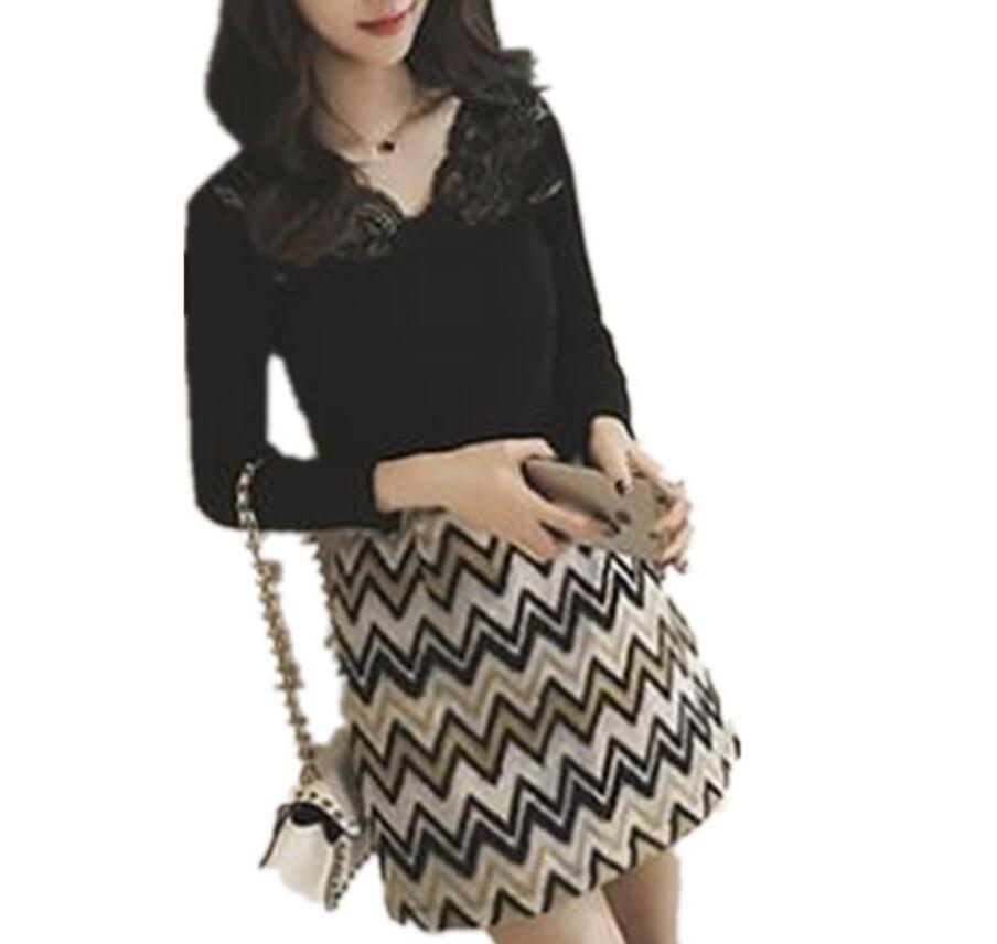 キャバ 魅惑 ドレス レディース 黒 パブ 長袖 レース タイト スカート エレガント プリーツ 韓国 セクシー