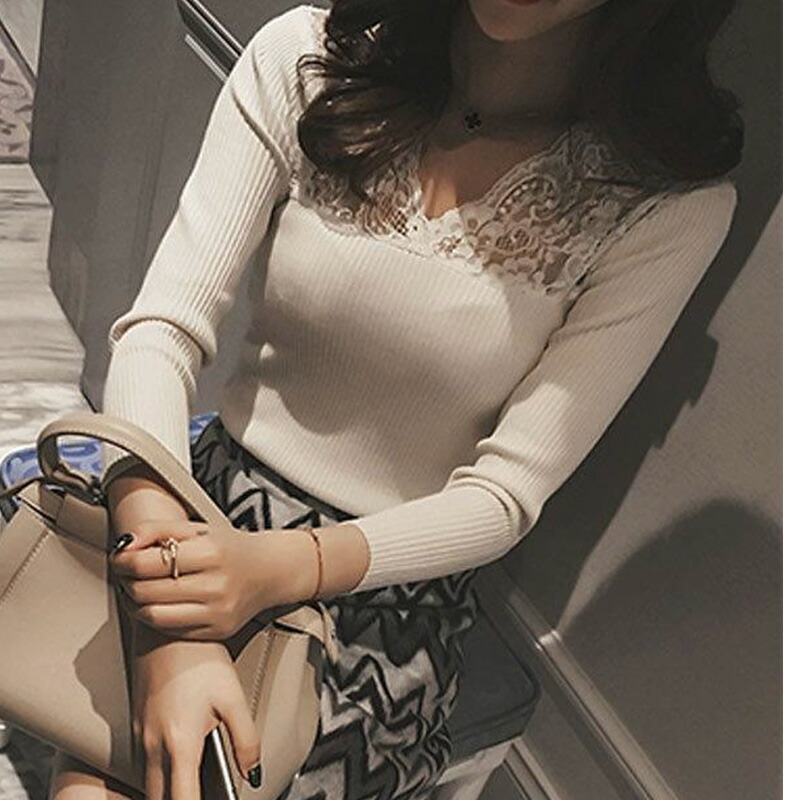 トップス レディース Vネック リブ トップス ニット セーター セーター 豊富な品揃え ブラック グレー M L XL