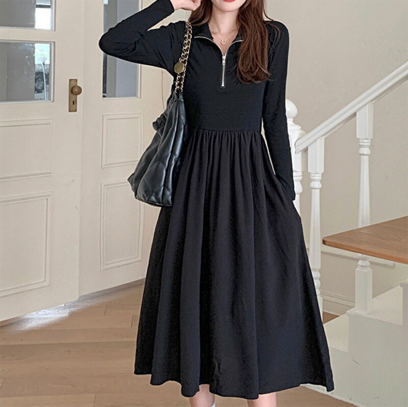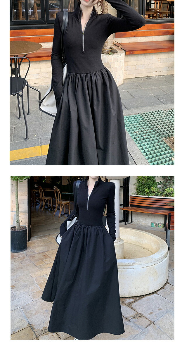 キャバ 魅惑 ドレス レディース 黒 パブ 長袖 レース タイト スカート エレガント プリーツ 韓国 セクシー