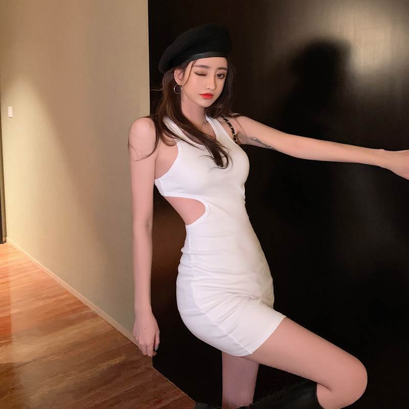 2色 ワンピ ドレス ミニ タイト キャバドレス カジュアル スポーティー レディース ノースリーブ 露出 肌見せ チラ見せ ボディコン 白 紺 無地 スポーツ ワンピース キャバ ギャル セクシー