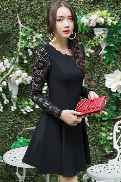 ★こだわり上質素材で高級感を醸し出す!スリム効果Aライン異素材切替ドレスワンピースです♪