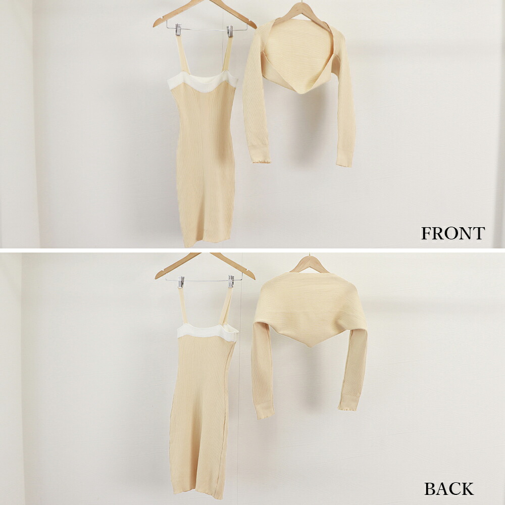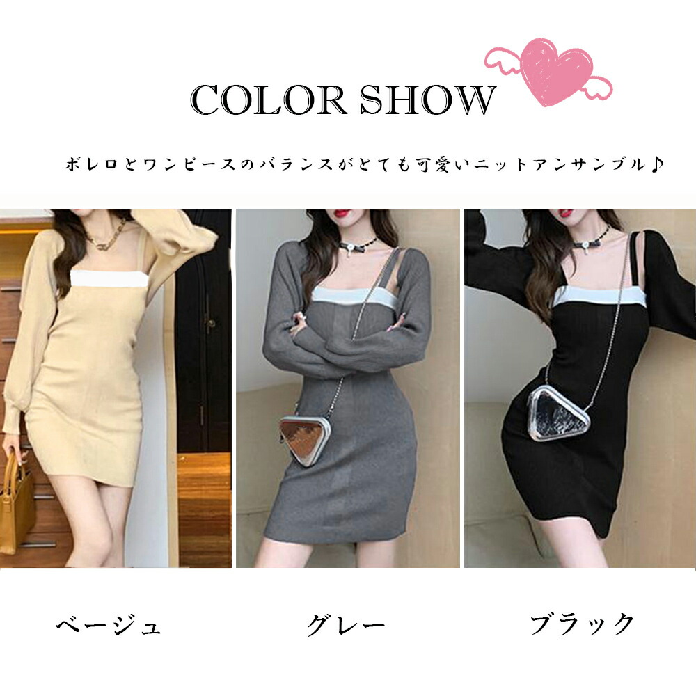 ニットボレロ ミニワンピース セットレ レディースファッション 続々登場 ベージュ/ ブラック/ グレー/