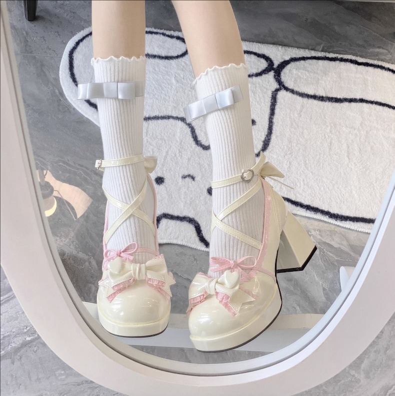 ロリータパンプス レディース厚底シュー 靴 新登場! ベージュxピンク ライトブルー 22.5cm(35) 23cm(36) 23.5cm(37) 24cm(38) 24.5cm(39)