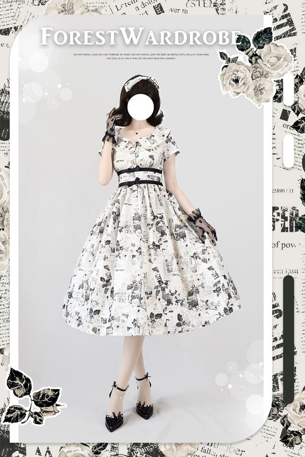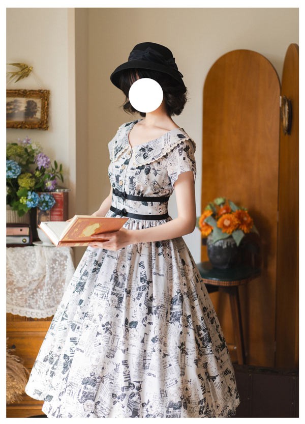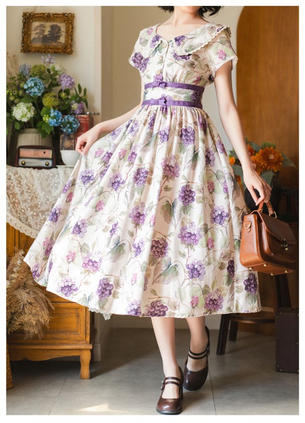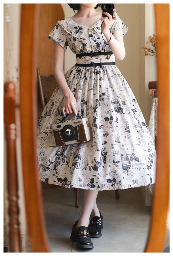 ロリータ ワンピース 花柄 レディース ゴスロリ ミモレ丈 クラロリ リボン 冬服 Aライン ハイウエスト ロリィタファッション レトロ風 クラシカル 上品 かわいい 日常着 通勤 お出かけ 仮 通学