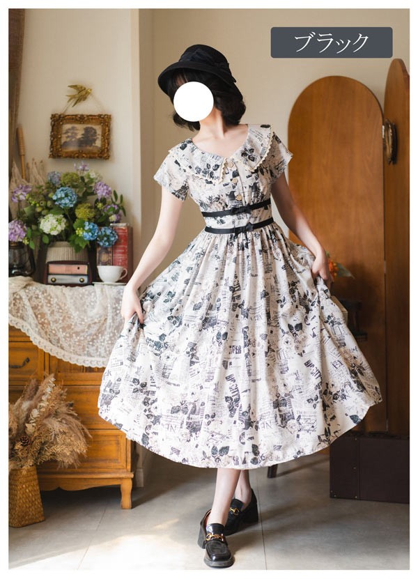 ロリータ ワンピース 半袖 夏用 ミモ レディースファッション 新登場! ブラック パープル S M L XL 2XL