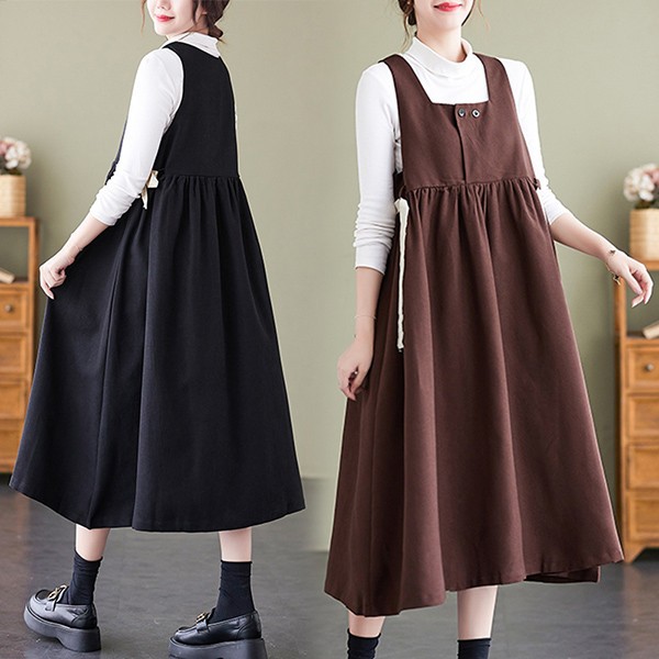 ジャンパースカート Aライン フレア ワンピース ミモレ丈 レイヤード カジュアル フェミニン韓国ファッション ミディ丈