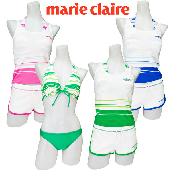 ラスト1着レディース人気ブランドマリクレール nikki製造 マルチボーダー柄タンキニ 水着 大人でセクシーホルターネックワイヤービキニ 白パンツ付き4点セット7号S 11号L 緑青ピンクグリ 9号M